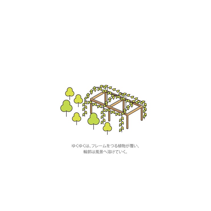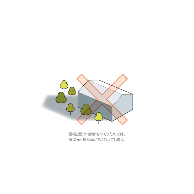 ここでは、単なる“建物”ではなく、そのような庭先の“環境”をつくりたいと考えた。